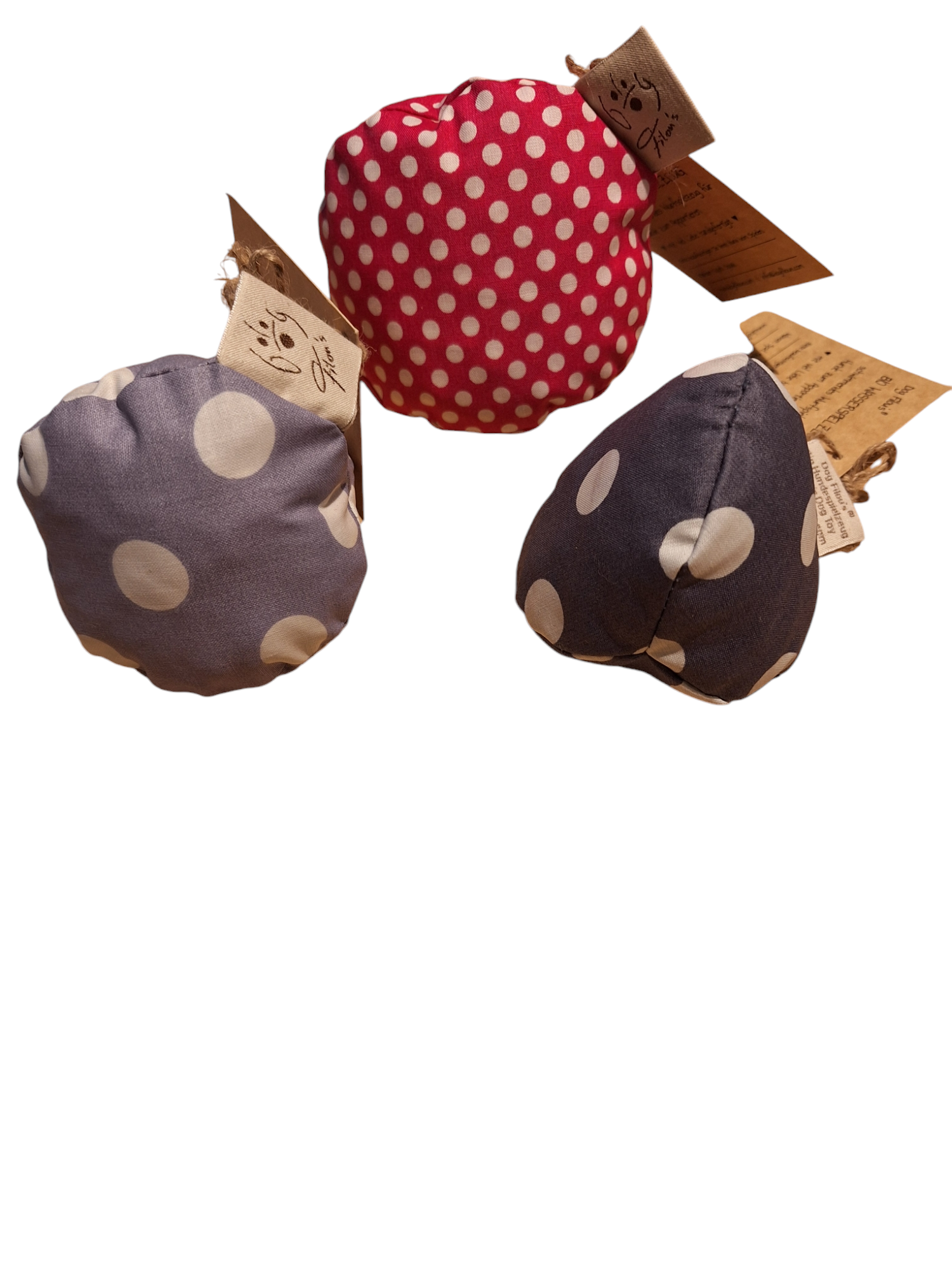 Für diese Stoffbälle wird ausschließlich hochwertiges Material verwendet. Die Biostoffe werden aus 100% Bio Baumwolle gefertigt und in einem speziellen Verfahren wasserabweisend beschichtet. Damit das Spielzeug stabiler ist und nicht so leicht von Deinem Hund durchgebissen werden kann, besteht jeder Ball aus zwei Lagen des beschichteten Stoffes. Alle Bälle werden von Hand mit zertifizierten Naturlatexflocken gefüllt. Auf das Einnähen eines Quietschers wurde bewusst verzichtet.