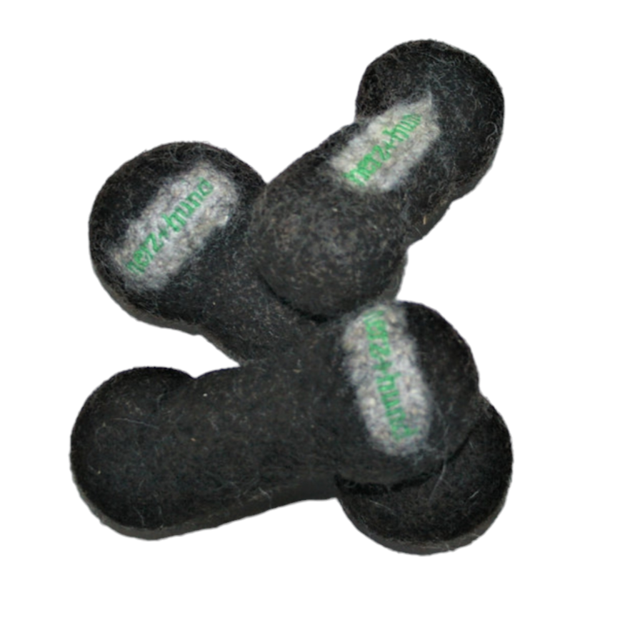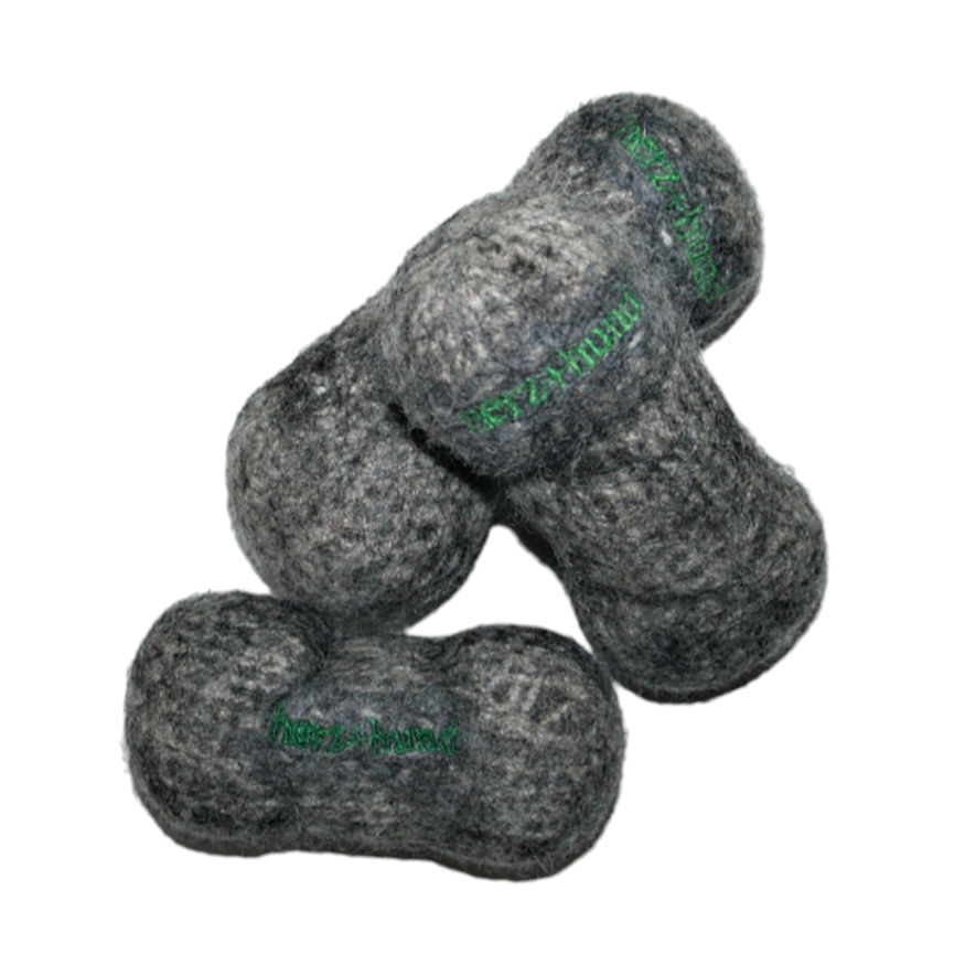 Fest gefilzt aus regionaler Schurwolle entstehen bei herzundhund® robuste Hundeknochen, welche durch den sanften Schäfchengeruch und die natürliche Oberfläche für Hunde einfach unwiderstehlich sind. Aufgrund der Materialien sind die Knochen frei von Giftstoffen, die Wollfasern sind für die Zähne unschädlich und helfen sogar gegen Zahnstein. Ein Spielzeug, mit dem der Hund ohne Bedenken seinen Spaß haben kann. Wurde ihm doch einmal zu sehr zugesetzt, so hilft ein Waschgang bei 60°C (einfach zur normalen Wäsche dazugeben), wodurch sich kleinere Schäden wieder regenerieren lassen.