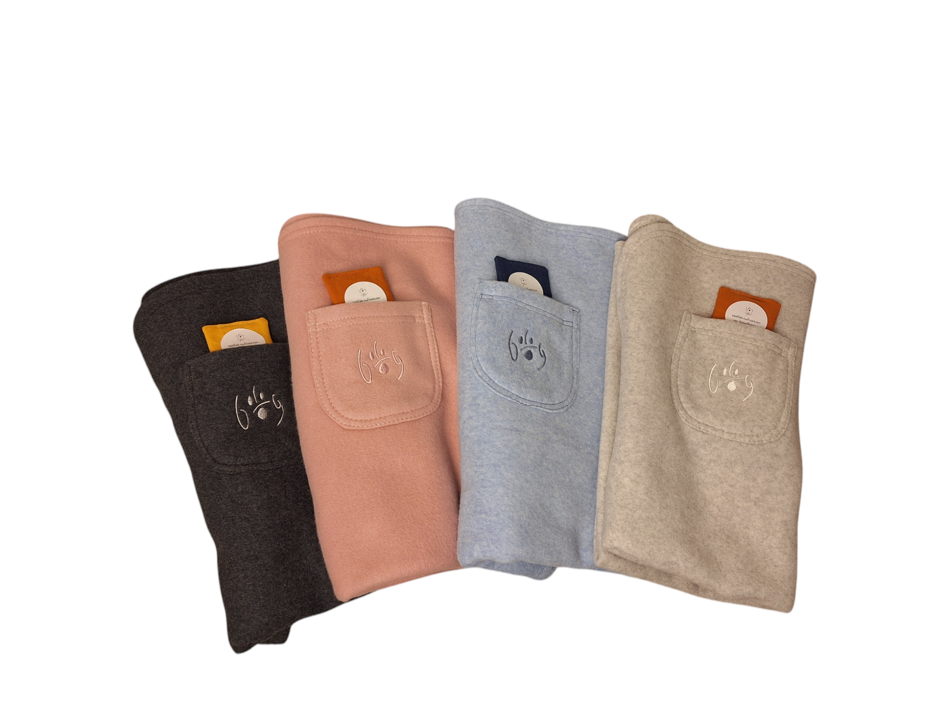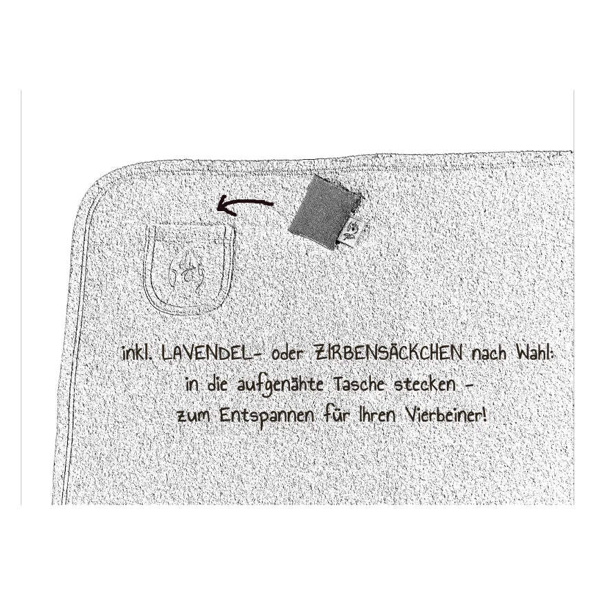 Auf jeder der Bio Fleecedecken ist eine kleine Tasche aufgenäht, in die Du ein kleines Lavendel- oder Zirbensäckchen stecken kannst - dieser Duft kann vor allem auf stressige oder auch ängstliche Hunde beruhigend wirken.