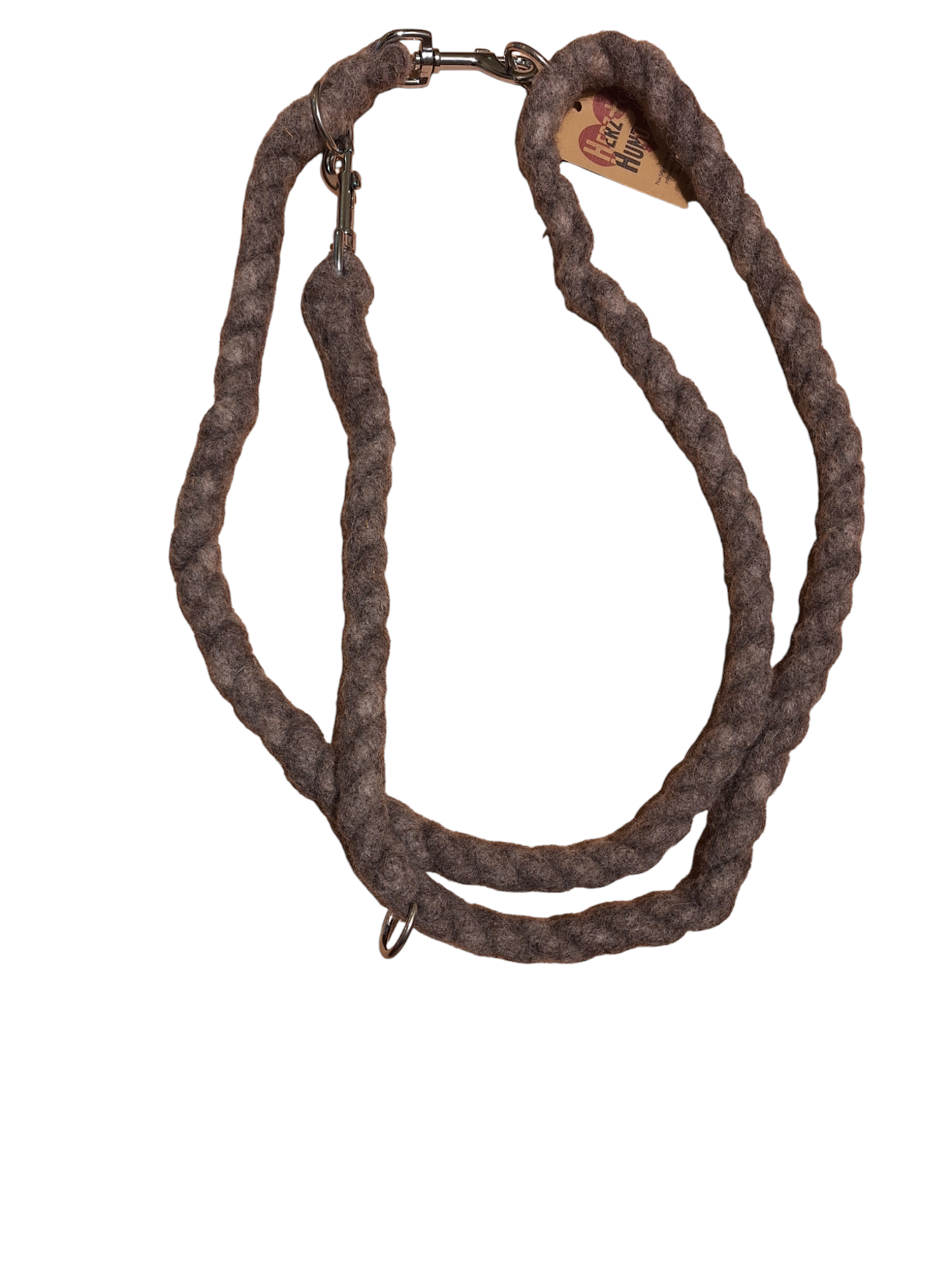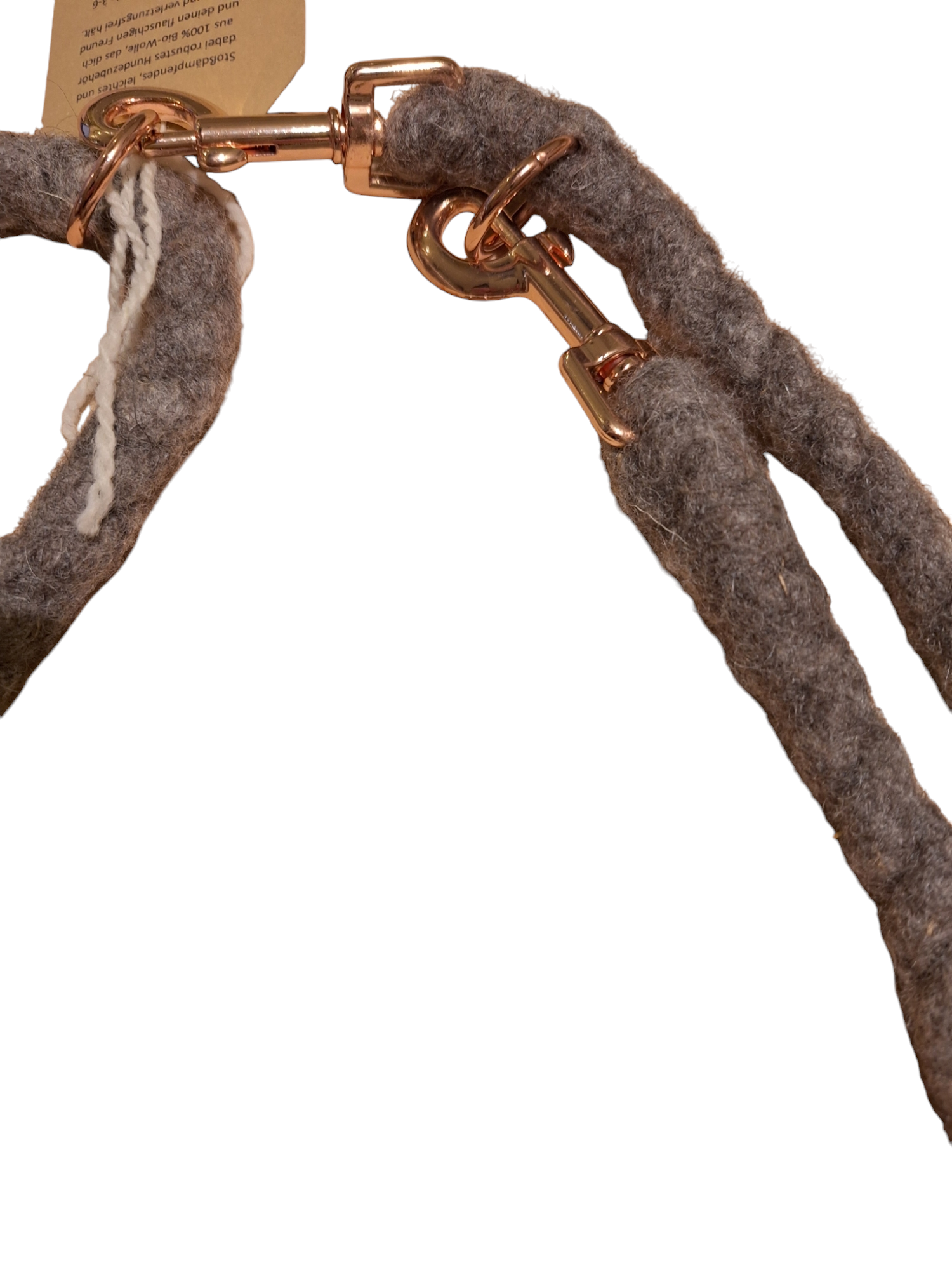 Der Wollfilz verleiht der Leine ganz leicht elastische Eigenschaften, was den Tragekomfort erhöht, deine Schulter und den Hals deines Hundes schont, wenn er doch einmal in die Leine springt, ohne dass die Leine ausleiert. Eine gelegentliche Wäsche (alle 3-6 Monate) bei bis zu 60°C in der Waschmaschine regeneriert die Struktur. Danach in Form bringen und trocknen lassen.